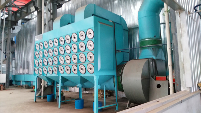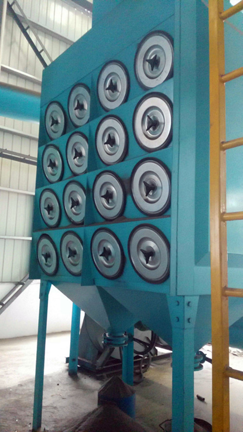 在離心風(fēng)機的負(fù)壓作用下,粉塵從排氣口進入后,通過風(fēng)管集中后進入粉塵凈化器,在擋風(fēng)板的作用下,氣流向上流動,流速降低,部分大顆粒粉塵由于慣性力的作用被分離出來落入灰斗。細(xì)粉塵進入凈化室,當(dāng)通過專用粉塵防靜電聚脂纖維濾芯時,粉塵被阻留在濾筒的外表面,凈化后的氣體經(jīng)濾筒口進入上箱體,從風(fēng)機出風(fēng)口排出。