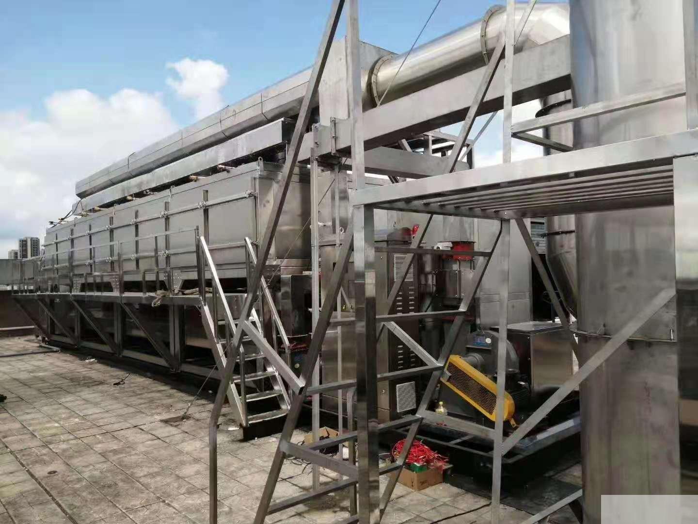 催化燃燒裝置(RCO):首先通過除塵阻火系統(tǒng)。然后進(jìn)入換熱器,再送到加熱室,使氣體達(dá)到燃燒反應(yīng)溫度,再通過催化床的作用,使有機(jī)廢氣分解成二氧化碳和水,再進(jìn)入換熱器與低溫氣體進(jìn)行熱交換,使進(jìn)入的氣體溫度升高達(dá)到反應(yīng)溫度。如達(dá)不到反應(yīng)溫度,加熱系統(tǒng)科通過自控系統(tǒng)實(shí)現(xiàn)補(bǔ)償加熱。利用催化劑做中間體,使有機(jī)氣體在較低的溫度下,變成無害的水和二氧化碳?xì)怏w