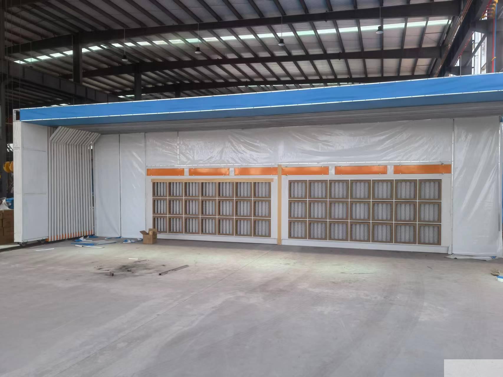 ? ?伸縮移動(dòng)文丘里干式噴漆房公件進(jìn)出方式---------通過行車吊入吊出或叉車移出、平臺(tái)車進(jìn)入開出、叉車移入行車吊出或叉車叉出等多種方式