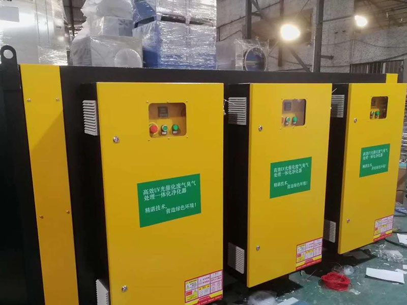 利用特制的高能高臭氧UV紫外線光束照射廢氣,裂解工業(yè)廢氣如:氨、三甲胺、硫化氫、甲硫氫、甲硫醇、甲硫醚、乙酸丁酯、乙酸乙酯、二甲二硫、二硫化碳和苯乙烯,硫化物H2S、VOC類,苯、甲苯、二甲苯的分子鏈結(jié)構(gòu),使有機或無機高分子惡臭化合物分子鏈,在高能紫外線光束照射下,降解轉(zhuǎn)變成低分子化合物,如CO2、H2O等。利用高能高臭氧UV紫外線光束分解空氣中的氧分子產(chǎn)生游離氧,即活性氧,因游離氧所攜正負電子不平衡所以需與氧分子結(jié)合,進而產(chǎn)生臭氧。