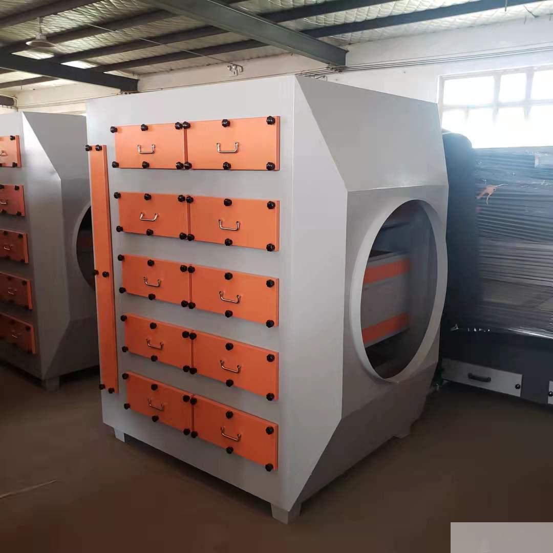 新型蜂窩狀活性炭?jī)艋?,是一般顆粒狀活性炭?jī)艋鞯奈灞兑陨?,將有機(jī)廢氣吸附后達(dá)標(biāo)排放。