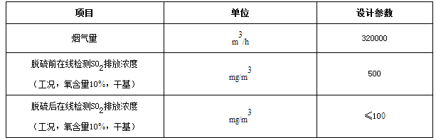本項(xiàng)目為重慶**水泥有限公司2500 t/d新型干法水泥生產(chǎn)線煙氣脫硫工程,具體設(shè)計(jì)參數(shù)詳見上述表格。
