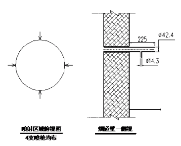 噴槍位置位于C2/C3煙道出口,共設(shè)置4支噴槍,氨水被平均分配到每支噴槍內(nèi),保證脫硫劑充分覆蓋整個(gè)煙道。