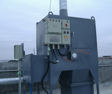 原理:在離心風(fēng)機(jī)的負(fù)壓作用下,粉塵從排氣口進(jìn)入后,通過風(fēng)管集中后進(jìn)入粉塵凈化器,在擋風(fēng)板的作用下,氣流向上流動(dòng),流速降低,部分大顆粒粉塵由于慣性力的作用被分離出來落入灰斗。細(xì)粉塵進(jìn)入凈化室,當(dāng)通過專用粉塵防靜電聚脂纖維濾芯時(shí),粉塵被阻留在濾筒的外表面,凈化后的氣體經(jīng)濾筒口進(jìn)入上箱體,從風(fēng)機(jī)出風(fēng)口排出。