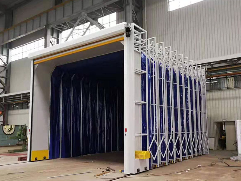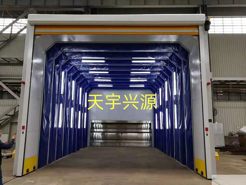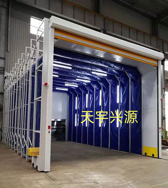 特點:伸縮移動噴漆前室和無泵水幕噴漆室結(jié)合使用,是解決重型工件噴漆時移動難的問題,而活動噴漆前室就克服這個問題。工作時將活動前室收縮,用天車將重型工件吊運到噴漆場地,再將活動前室展開,罩住工件,即可工作。噴漆后再將前室收縮,用天車將工件吊離,不影響天車的工作。